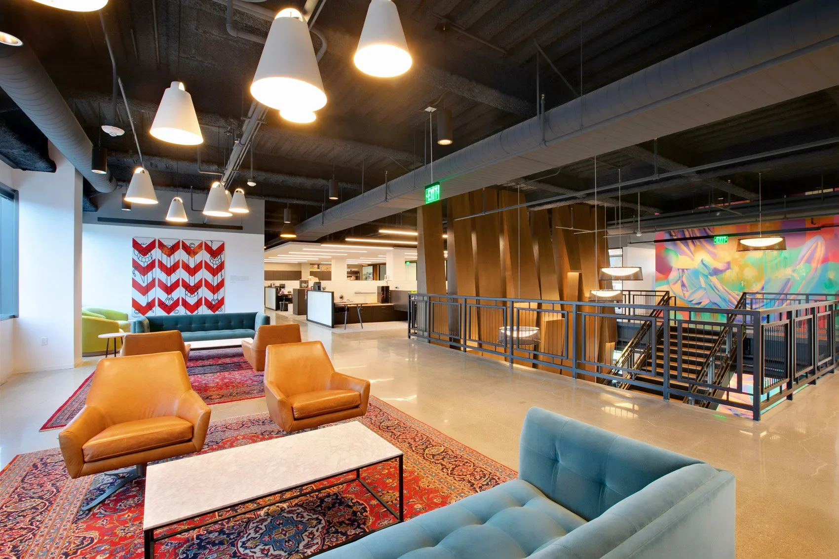 Interior designWhen entrusted with the design of an Irvine office building, the goal was to create a space that was distinctive, thoughtfully designed, and visually compelling. Given the building’s industrial character, the interiors required a careful balance of cool and warm tones to soften the aesthetic while maintaining a modern edge. The introduction of curated furniture selections, layered textures, and playful rugs helped achieve an eclectic yet cohesive design. The office is located at 7755 Irvine Center Drive, Irvine, California.